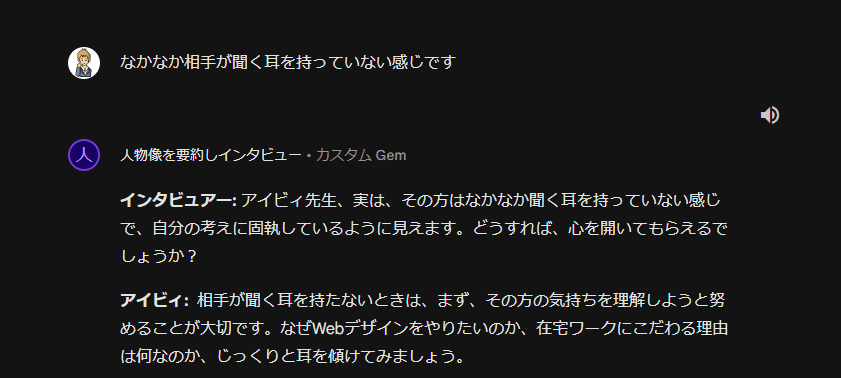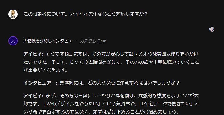 Googleの生成AI「Gemini」を使用し、AIで仮想のアイビィ先生を作り、相談しました。